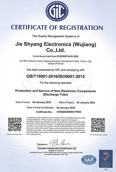 捷祥電子(吳江)有限公司成立于2000年11月.其母公司臺灣千祥電子有限公司成立于1994年03月,專業從事玻璃氣體放電管(SPARK GAP)及陶瓷氣體放電管(GAS DISCHARGE TUBE)半導體放電管(SIDACTOR)之開發與制造。承襲日本供應商之全部制造機械設備、治工具、技術等;并與臺灣協力廠商共同開發各工程使用之大量生產自動化設備及輔助治、工具,以提升生產性能、降低工時,期達成顧客需求之目標。